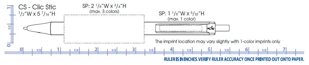 Additional Ordering/Imprint Info: Choose 1 barrel and 1 trim color. Please note that barrel and trim colors may not be an exact color match. Flow lines may be visible in metallic colors. For multi-color imprints on clear barrels, the imprint area is 1-7/8" wide x 3/4" high. The imprint location may vary slightly with a 1-color imprint only.